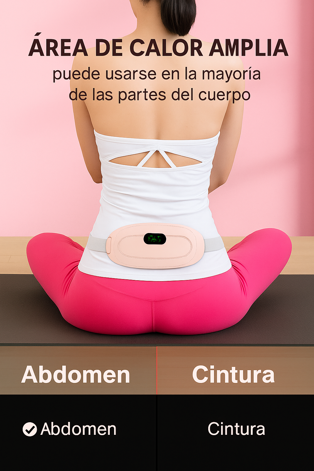 Nuestra almohadilla térmica está diseñada para adaptarse a distintas zonas del cuerpo como abdomen, cintura o espalda baja. Su área de calor amplia brinda un alivio profundo y reconfortante justo donde lo necesitas, ayudándote a relajar músculos y reducir molestias de forma rápida y segura.